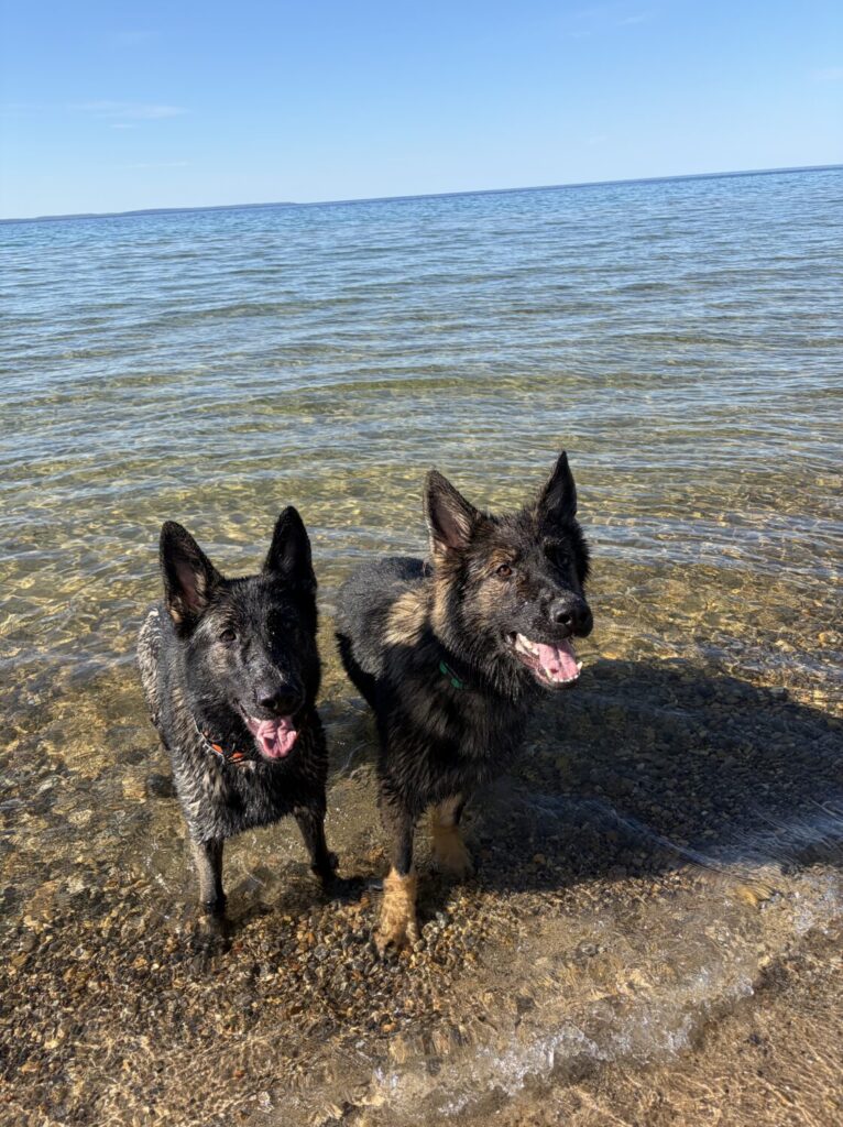 Ziggy and Hoka at Lake MI